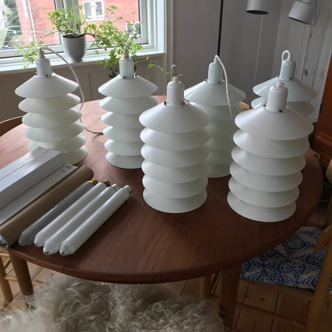 Klassisk dansk designikon med de karakteristiske lagdelte skærme, der giver et blødt og blændfrit lys.