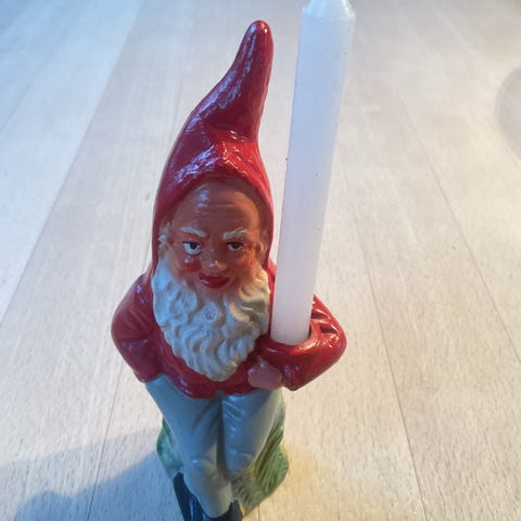 Skøn keramik nisse i flotteste stand med plads til et enkelt lys. 20cm høj.