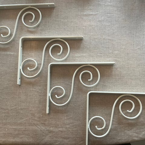 Sæt med to ubrugte hvide hyldeknægte i metal.