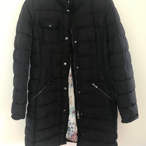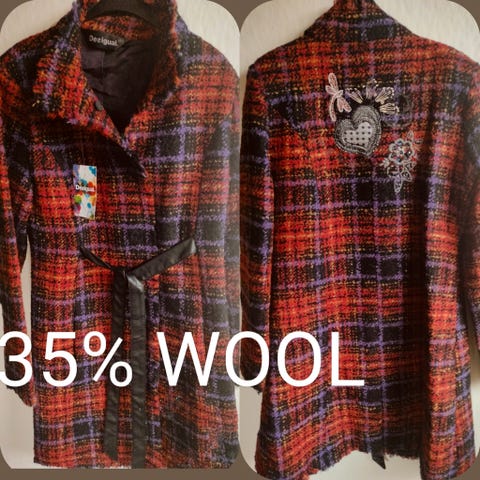 Desigual uldfrakke i fin stand. St. 42 men lille i størrelsen. Grønt for med blomster.