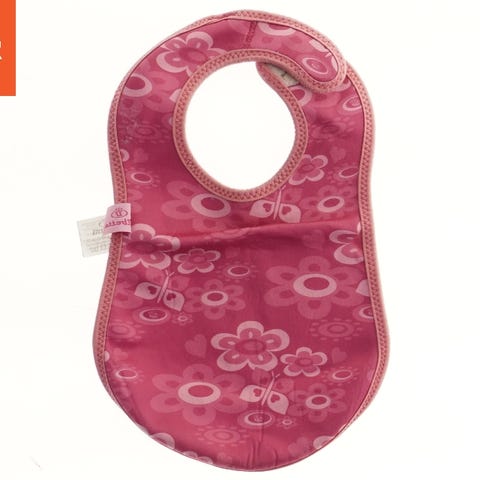 Den bløde, vandafvisende polyester hagesmæk, har en vandtæt bagside og fæstnes til bakken med velcro.
