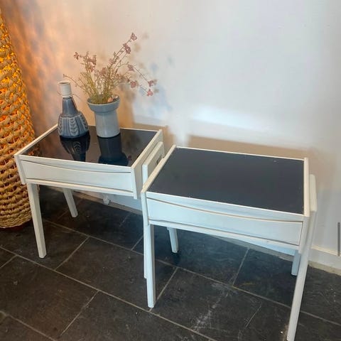 Den var malet hvid da jeg fik den, er ikke helt væk endnu. Byd!