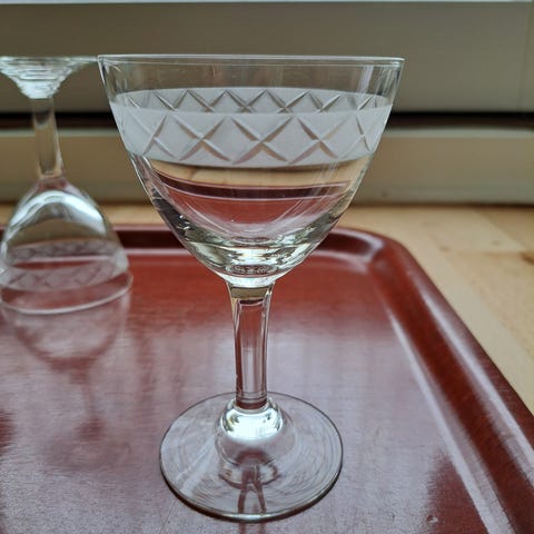 Holmegaard Ejby hvidvinglas i fin grøn farve og med fint indgraveret mønster.