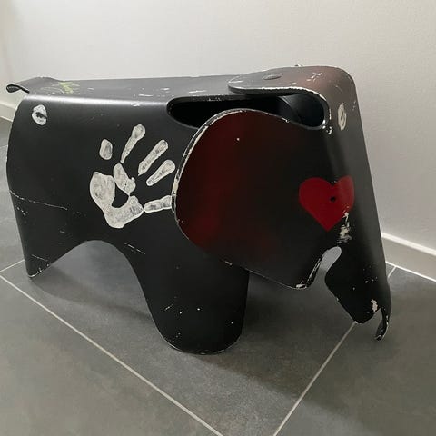 Elefanten er det dyr, som gennem tiderne har nydt størst popularitet. Det er nok på grund af dens majestætiske størrelse og godmodighed. Den populære elefant til børn, som Charles & Ray Eames tegnede i 1945, fås nu i en lille udgave, som måler 39 x 21 cm. Minielefanten er fremstillet af miljøvenligt plastik.