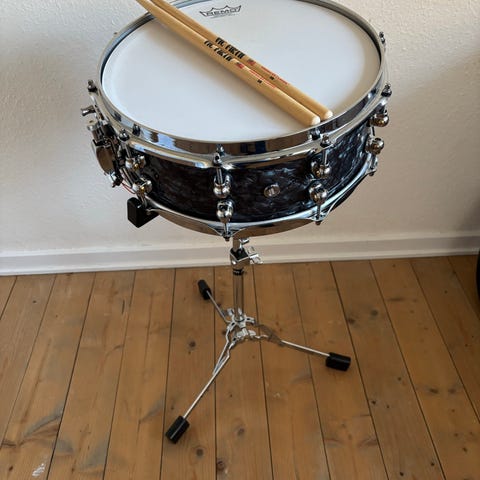 Den lyder vildt godt, og med dejlig megen bund. Der er monteret ben, så man kan nemt have den stående ude i siden. Kan selvfølgelig også smides i stativ, og bruges som main-snare.