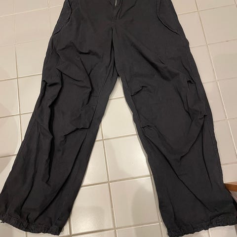 Sorte overtræksbukser med elastik og trykknapper. Mærke Globalfunk.