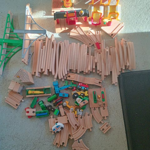 15 kg. blandet Brio togbane i træ inkl. tilbehør.