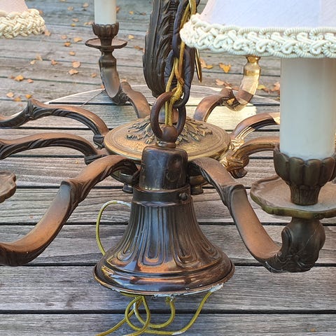Flot gl. Vintage Bronze lysekrone 6.arme.