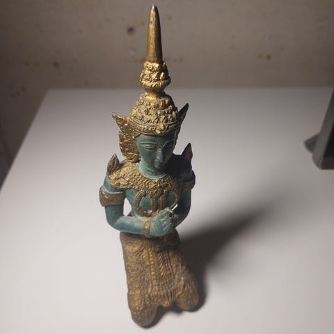 Købt i Katmandu. Fremragende håndværksmæssig udførelse. De rejste slangehoveder symboliserer den rejste kundalinikraft. 13 c. høj, Vægt: 580 g.