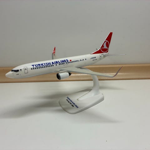 Modellen er lavet i plastik og står på original metalstander – klassisk Fratelli Cesana displaymodel fra Carate Brianza, Italien, som typisk har stået hos rejsebureauer eller i billetkontorer.