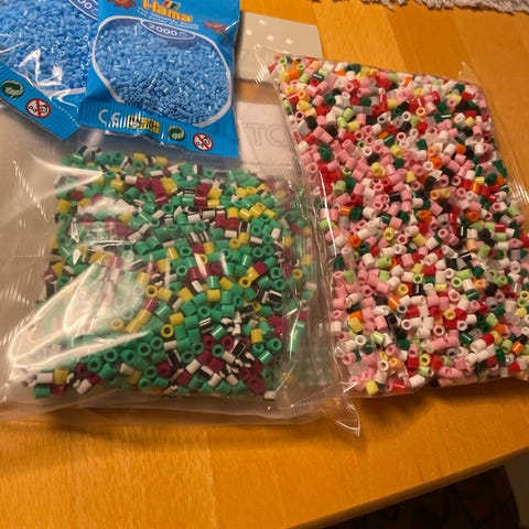 4 pakker hama mini perler 2000 styks perler i hvee pose, samt 3 plader.