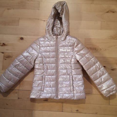 Okaidi (FR) børnejakke i størrelse 104 til piger. Jakken er blå med lyserød foring og har en hætte. Den er polstret med genanvendt polyester og er vandafvisende. Jakken kan maskinvaskes/tørres