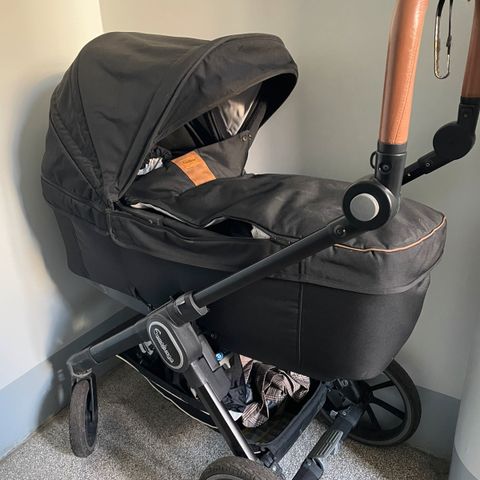 Emmaljunga NXT90B, liggemål 98 cm, brugt sparsomt til et barn i et år, og altid været opbevaret inde. Den fremstår i rigtig god stand.