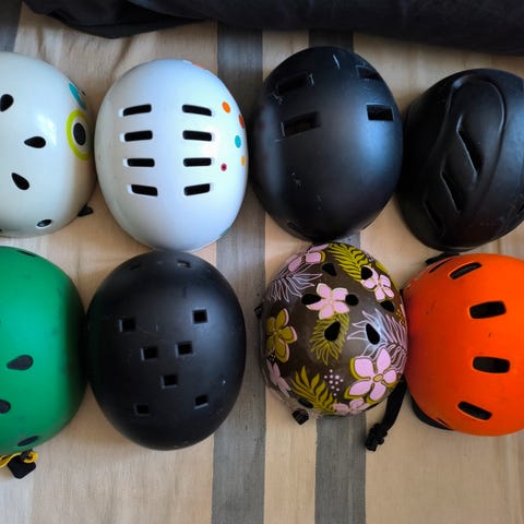 Alle hjelme er i ok stand med enkelte brugsspor.