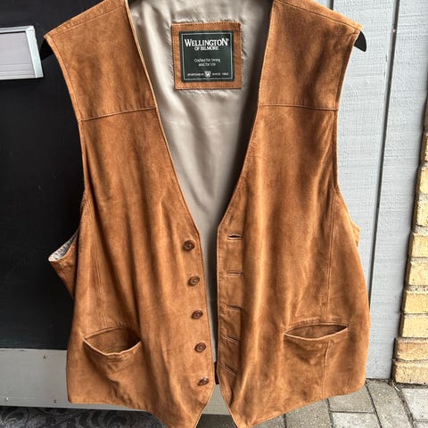 Indigofera ruskindsvest (str L) søger ny ryg og nye scener. Som ny - brugt få gange, og jeg får den brugt for sjældent. Superfed. Jeg er 179 cm høj og vejer 80 kg. Der er plads til lidt mere dunk under den.