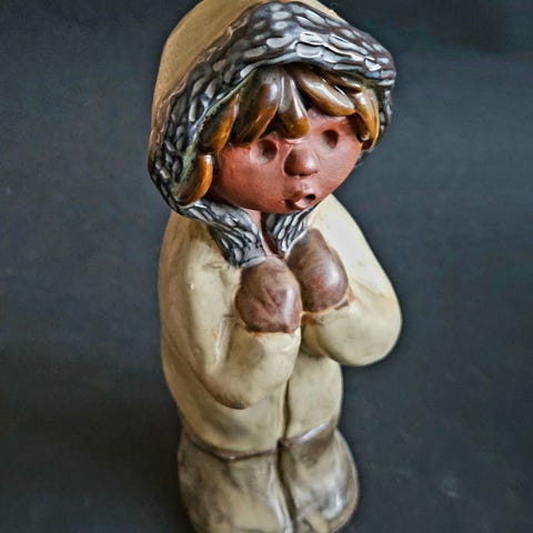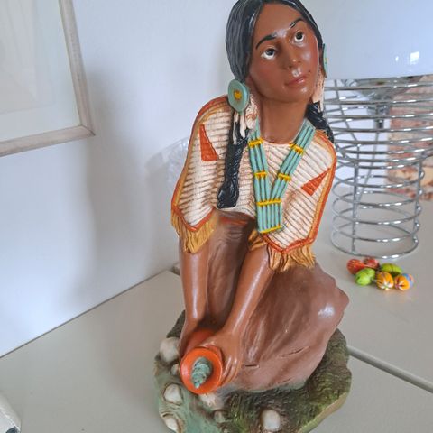 Figur af Inuit, canadisk, der is fisker. Materialet er resin.