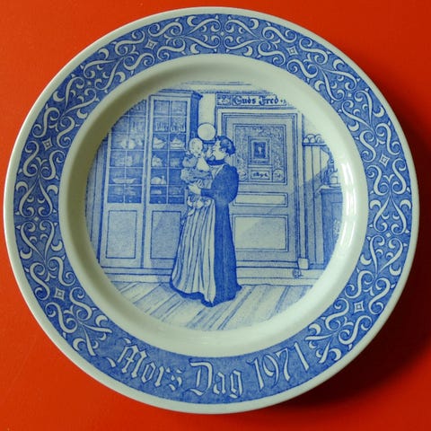 Platte, Rörstrand, 1971, Mors dags platte, 1971 fra Rörstrand Sweden. 21 cm i dia.