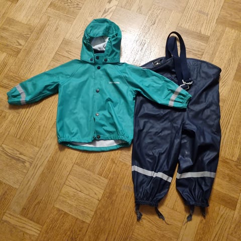 Didriksons regntøj str 120 (122/128). Af modellen stormman. Det er et meget lækkert sæt men min dreng tog et spring så vi har desværre ikke fået brugt det.