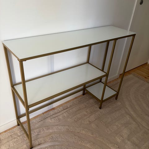 Fin konsol 'Virum' fra Jysk, som egner sig godt både i entré, stue og soveværelse. Hvidt metal. Som ny. Nypris 500 kr.