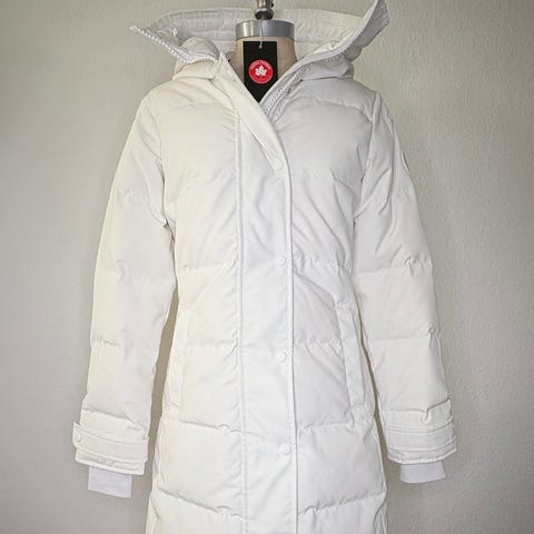 Jakken er meget varm og fyldt med 625 fill power dun (80 % dun / 20 % fjer) og er uden pels. Den er produceret i Canada og har et klassisk snit.