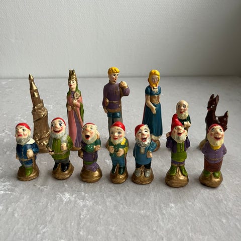Håndmalet 1988, Snehvide & de 7 små dværge fra Disney filmen i håndmalet porcelæn håndmalet af mormor i 1988.