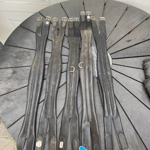 Sort, 80 cm, pæn og i orden, nyvasket. Spænderne er uden elastik.