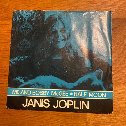 Janis Joplin Pearl vinylplade med CBS label, 33 ⅓ RPM.