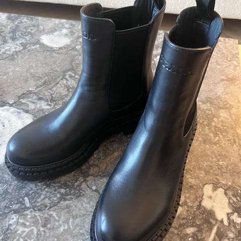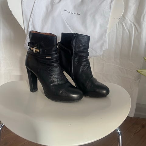 forsålet + unisex + hælekap på den ene støvle lidt skæv, se foto bag fra + der er hul i læderet inde ved hælen på begge støvler+ hvis original stofpose medfølger