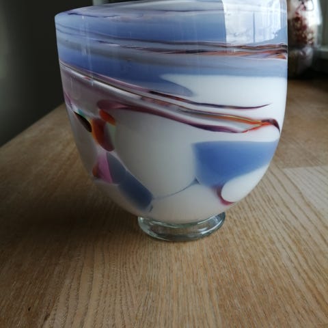 Smuk håndlavet skål af kunstneren Susanne Møller Johansen i Glasværkstedet, Vejle.