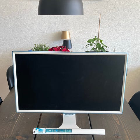 Samsung 24 tommer LED-skærm 1920 x 1080 pixels Opdateringshastighed: 60 Hz Responstid: 4 ms. 2 år gammel. Nypris: 1000 kr.