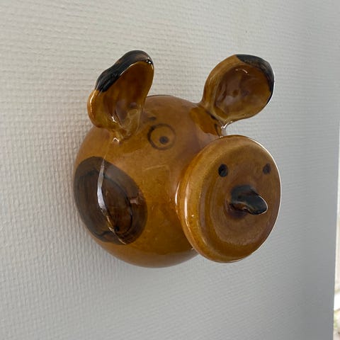 Gris på toilettet. Vintage sparegris. Sparebøsse