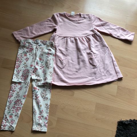 2 dele, lilla leggings og bluse i strik, str. 110