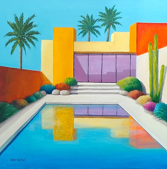 Smukt stykke af Eleonora Stol. Farverne er så livlige og springer ud af værket. Det er blandet teknik på lærred. Eleonora bruger forskellige materialer som akryl, blyant og olieverf.