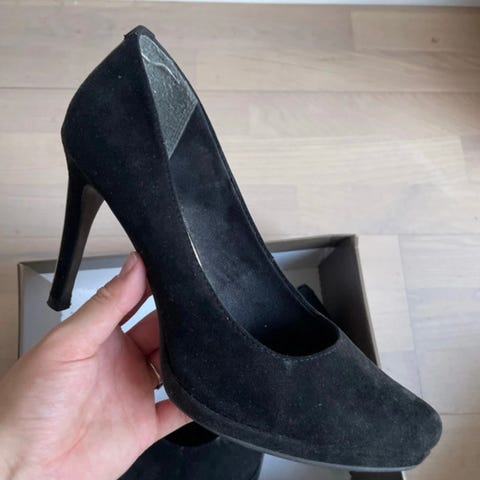 Tamaris højhælet sko i hvid farve, størrelse 38. Skoene har en rund tå og en platformsål med en hælhøjde på cirka 8 cm. Materialet fremstår som syntetisk læder med en glat overflade. Designet er klassisk og egnet til formelle eller festlige lejligheder.