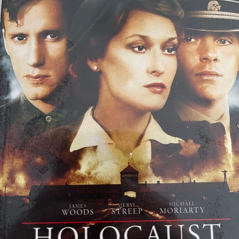 DVD film titled Holocaust featuring actors Meryl Streep, James Woods, and Michael Moriarty. The film covers historical events related to the Holocaust.