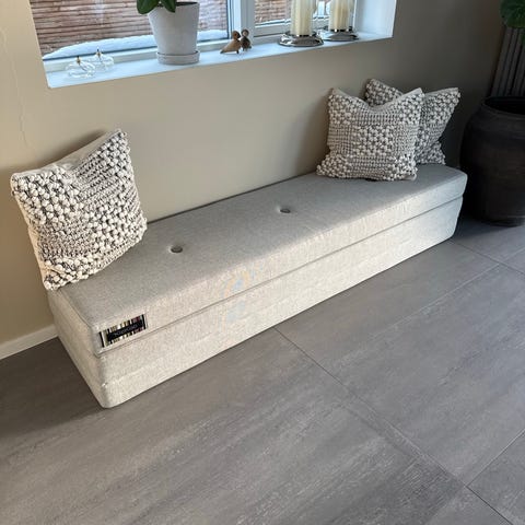 Foldet som en daybed/puf: H: 36 cm B: 50 cm L: 180 cm