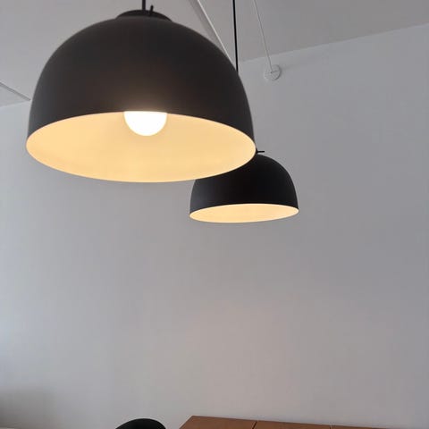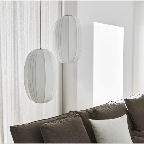Ilva Birla pendel lampe med en højde på 40 cm og en diameter på 28 cm. Lamperne er hvide.. De er lavet af materialer, der giver et blødt og diffust lys, velegnet til stuer eller andre opholdsrum.