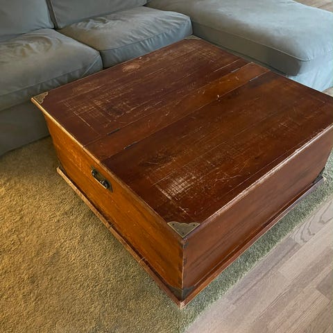 Fint sofabord m. - 4 kurve , under til opbevaring.. ca. 99 cm lang, 68 bred , og højde ca. 49 cm. Perfekt til studieboligen, sommerhuset eller andet .. bordet med lidt patina .. se fotos
