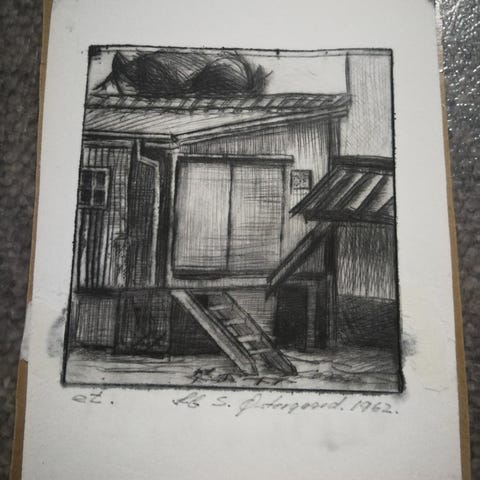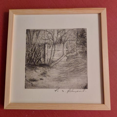 Charmerende og stemningsfuld radering af Ib S. Østergaard
