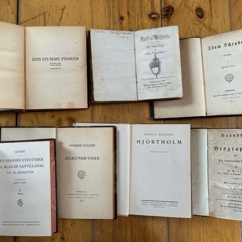 1: Die Märchen von E. Th. A. Hoffmann i to bind uden udgivelsesår, trykt med gotisk skrift. Bind 1 300 sider, bind 2 348 sider. Fast indbinding. 50 kr