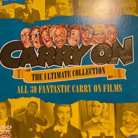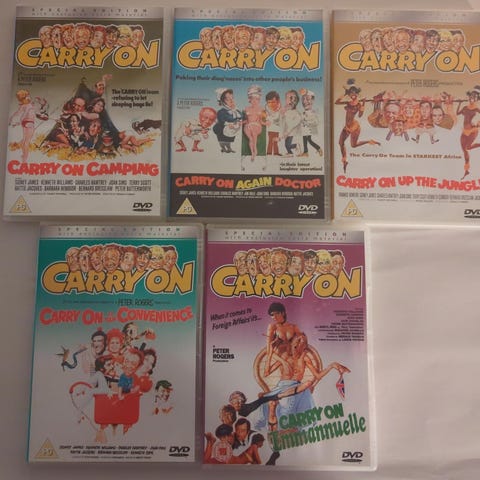 Stor samling med 12 titler i den underholdende britiske kult filmserie “Carry On”.