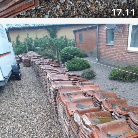 Tagsten, tegl, Gigant Komproment, b: 30,4 l: 46,4, Gigant Rødbrun Engoberet teglsten. 160 stk ca 16,8 m2. Ny ubrugt sælges til bud over halv pris som er kr. 5.- pr. stk.
