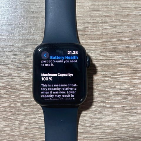 Sælger mit flotte Apple Watch SE 2nd Gen i farven Starlight (alu) med matchende sportsbånd.