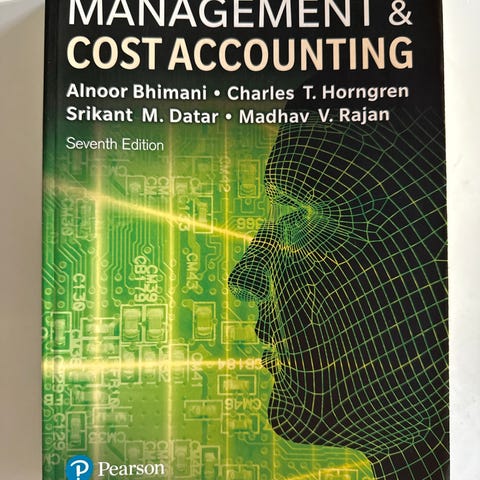 Pearson Cost Accounting Tekstbog, syvende udgave. Bogen dækker grundlæggende og avancerede emner inden for omkostningsregnskab med fokus på økonomi og handel. Indeholder teorier og praktiske anvendelser inden for ledelsesregnskab, omkostningsstyring og beslutningstagning. Velegnet til studerende og fagfolk inden for økonomi og handel.