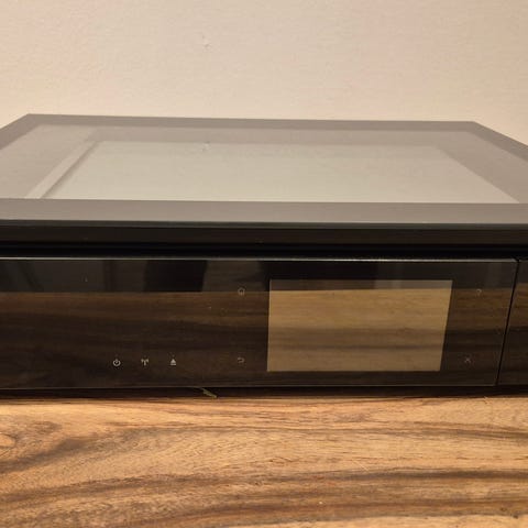 Samsung Xpress M2070 multifunktionsprinter i sort farve. Printeren har funktioner til udskrivning, scanning og kopiering. Kompakt design egnet til hjemme- eller kontorbrug. Understøtter sort-hvid udskrivning. Et hængsel til scannerlåget er knækket, men det påvirker ikke funktionen.