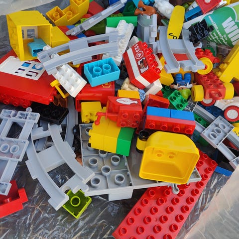Meget duplo sælges samlet eller enkelt, der er tog med lys og lyd med ekstra skinner, mange maskiner, zoo, bondegård, rumraket, Disney, heste, bogstaver og meget andet.