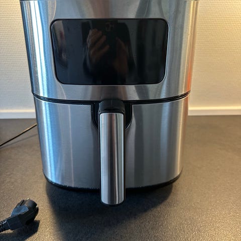 Jeg har haft denne airfryer i to år og været enormt glad for den! Men den er for stor for en enkelt person, så nu har jeg købt en mindre og sælger den derfor. Men den virker perfekt og laver retter lynhurtigt uden at behøve forvarmning. Den har en stor 5L beholder, og man kan finde bagepapir som passer i alm butikker som Føtex.