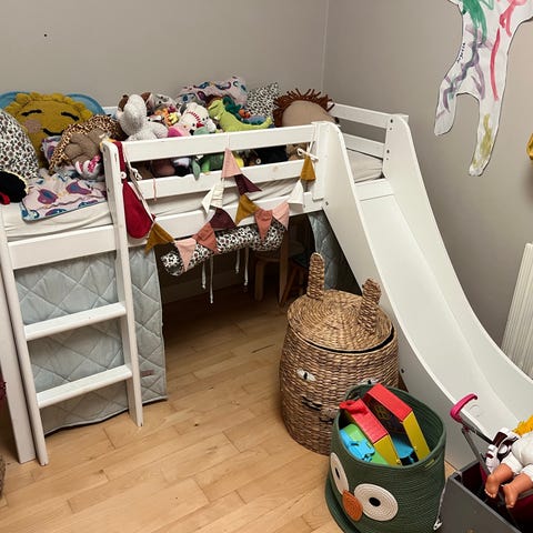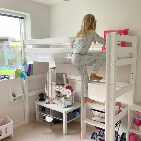 Hoppekids halvhøj seng 90*200 sælges med medfølgende madras og rullemadras.