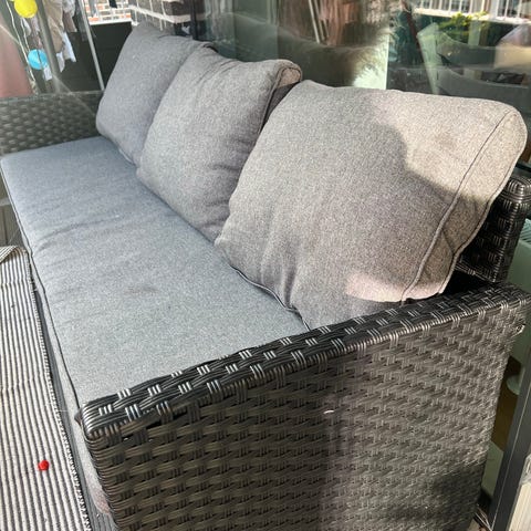 Udendørs flet sofa sæt med grå hynder