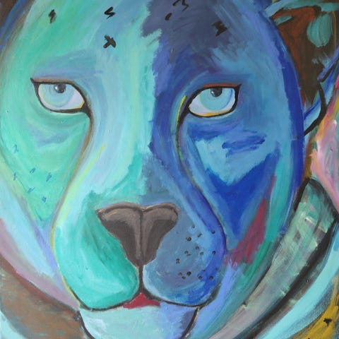 Sjov ko 60x60 cm i rød eller blå, 1400 ny malet
